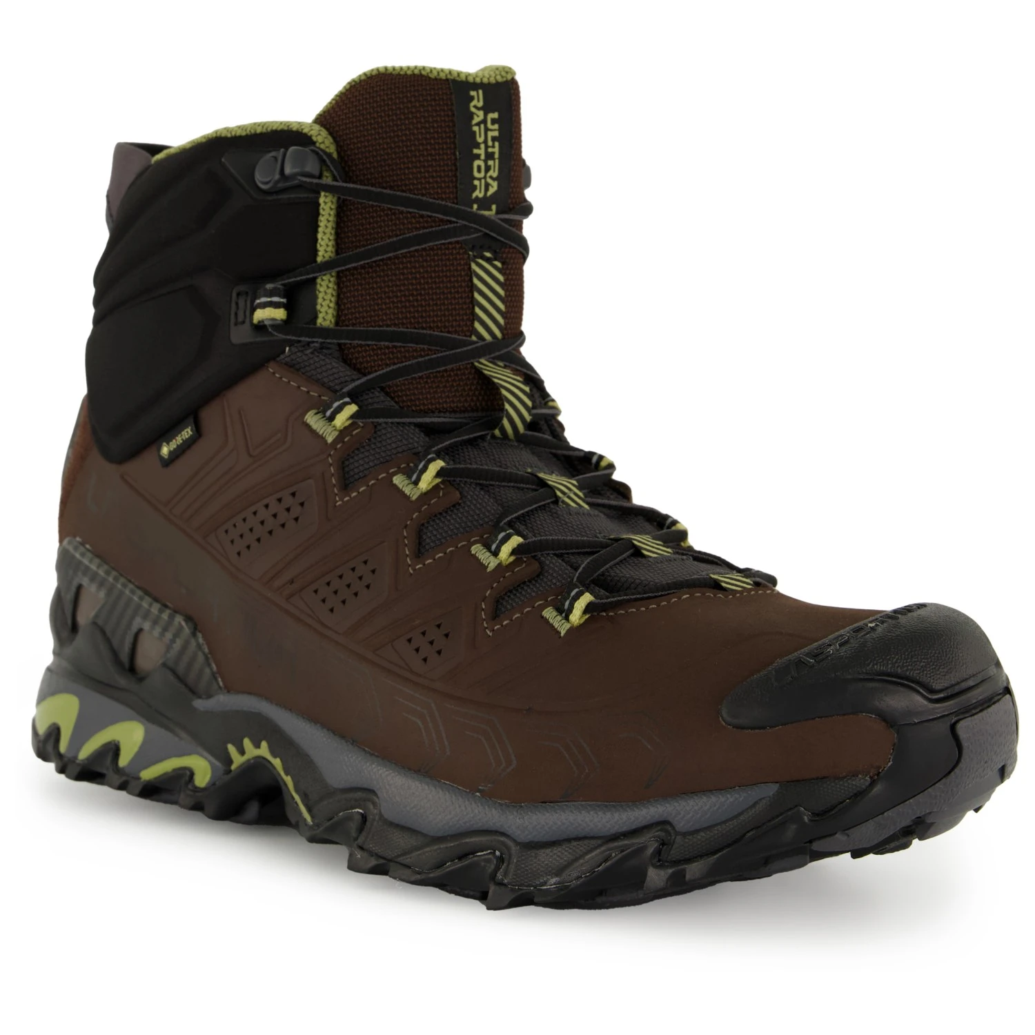 They’re equipped with a stabilising heel insert that provides protection from external impacts and ensures control on crossbeams. As for the FriXion Blue sole made of a soft XF compound with the Trail Bite heel attachment, it’ll enhance the braking properties whilst running downhill. Some other great features include the special lacing system that ensures a good fit and the eyelets on the inside of the upper that are sewn on and reinforced on the outside. This system allows the tension of the laces to be distributed over the entire upper of the Ultra Raptor II Mid Leather Wide GTX.